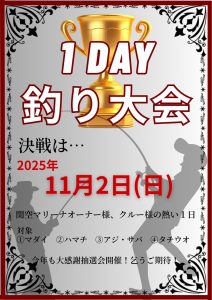 11/2(日)2025いずみさの関空マリーナ1DAY釣り大会(大阪)